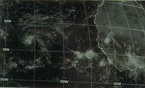 13. Satellite view showing mesoscale convective systems over tropical west Africa and the eastern Tropical Ocean.