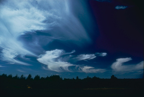 7. Cirrus spissatus with virga (i.e., precipitation falling out of the cloud but not reaching the ground). Seattle, Washington. (Photo courtesy of Steven Businger.)