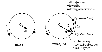 causing the ball to miss the target. The rotating observer at the North