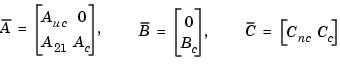 [Abar,Bbar,Cbar,T,k]=ctrbf(A,B,C) Abar = -3.0000 0 -3.0000 2.0000 Bbar = 0.0000 0.0000 1.4142 -1.4142 Cbar = -0.7071 0.7071 0.7071 0.7071 T = -0.7071 0.7071 0.7071 0.7071 k = 1 0
