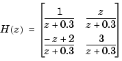 nums = {1 [1 0];[-1 2] 3} Ts = 0.2 H = tf(nums,[1 0.3],Ts) % Note: row vector for common den. d(z)