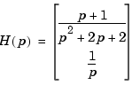 num = {[1 1] ; 1} den = {[1 2 2] ; [1 0]} H = tf(num,den,'inputn','current',... 'outputn',{'torque' 'ang. velocity'},... 'variable','p') Transfer function from input "current" to output... p + 1 torque: ------------- p^2 + 2 p + 2 1 ang. velocity: - p