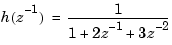 h = tf([1 1],[1 2 3],0.1,'variable','z^-1')
