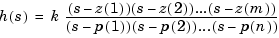 are the vectors of real or complex conjugate zeros and poles, and k