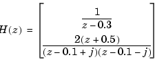 z = zpk('z',0.1); H = (z+.1)*(z+.2)/(z^2+.6*z+.09) Zero/pole/gain: (z+0.1) (z+0.2) --------------- (z+0.3)^2 Sampling time: 0.1