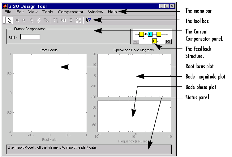 to open the SISO Design Tool. This picture shows the GUI and introduces some terminology.