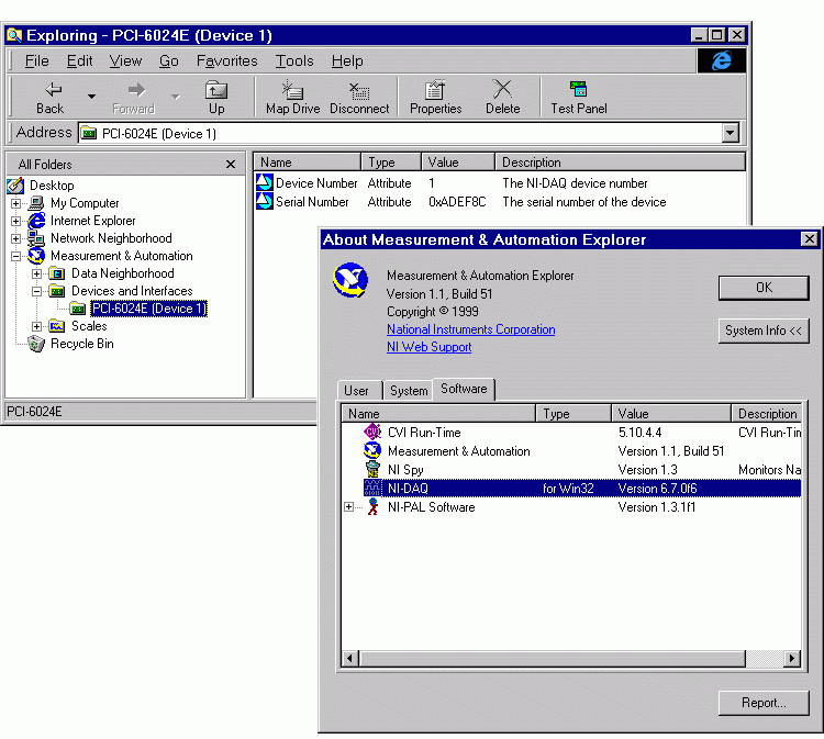 For example, the version of NI-DAQ used by a PCI-6024E board is shown below.