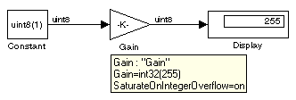 ) can represent the gain. In this case, Simulink can make the conversion because the gain is 255, which is within the range of the uint8