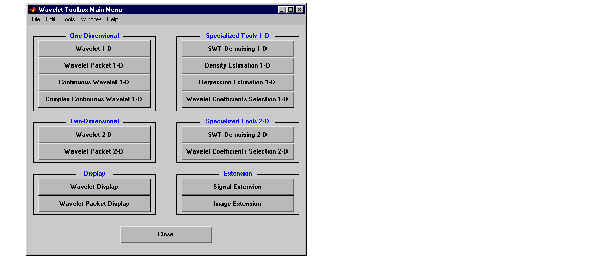 The Wavelet Toolbox Main Menu appears.