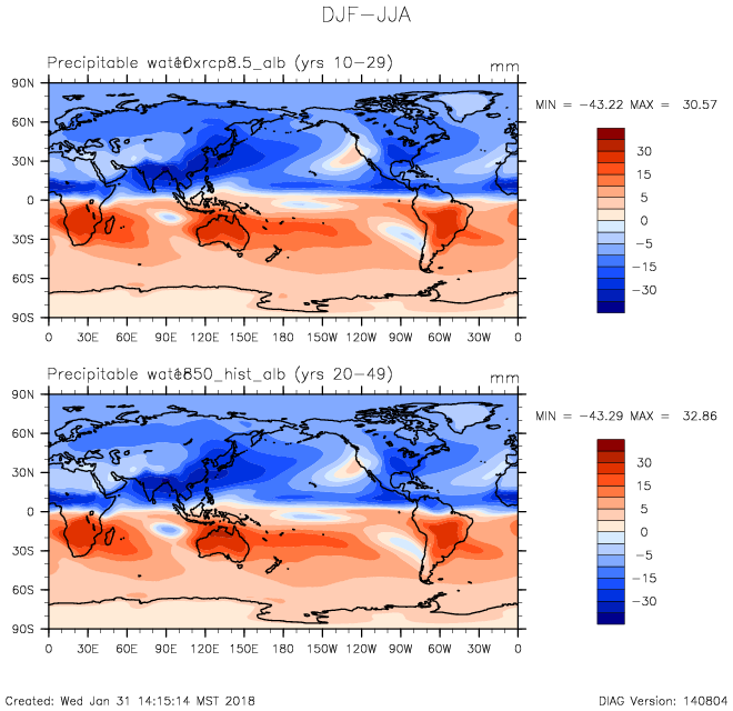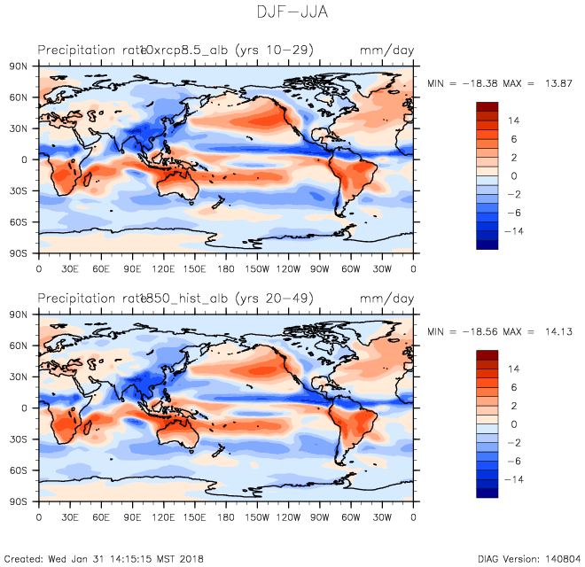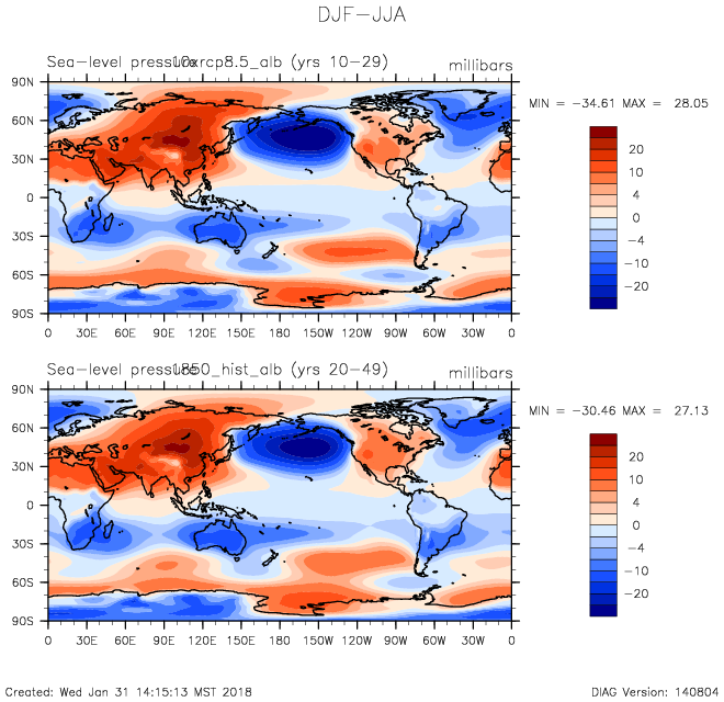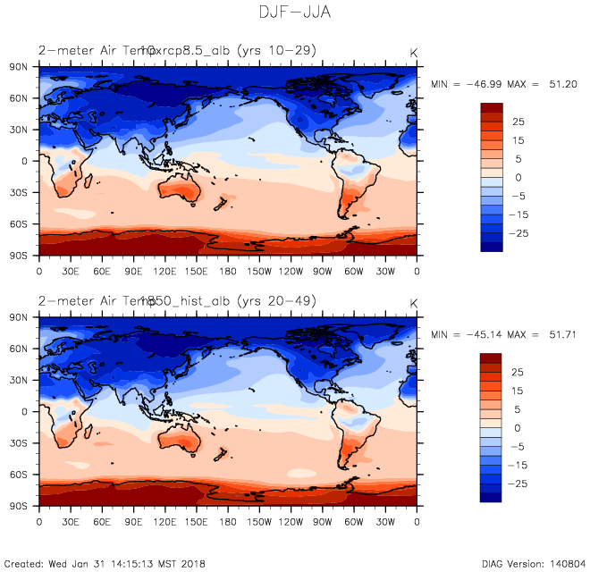 DIAG Set 9 - Horizontal contour plots of DJF-JJA differences