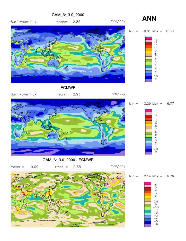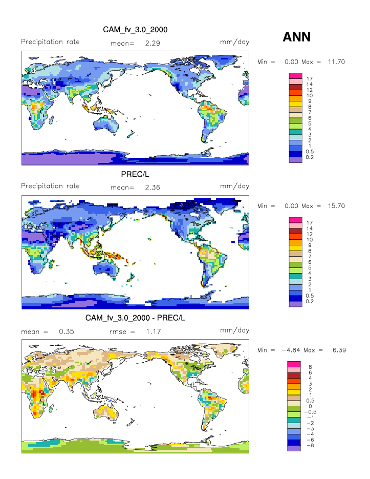 | PRECT * | Precipitation rate | plot | plot | plot |