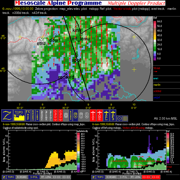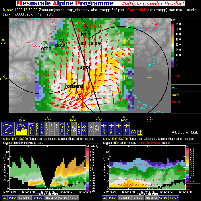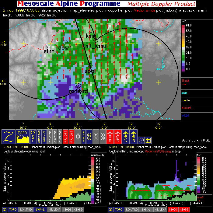 | Dual-Doppler Lobes (thin) and Horizontal Position of Vertical Cross-sections (thick) |