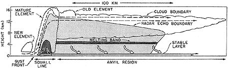 hydrometeors in precipitation from the anvil clouds