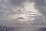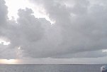 A shower aft, tall pendulous-based Cu all around. As aft, surrounding shower, skies are fairly dark. Some Ci and clear sky to starboard, but Cs overcast overhead.