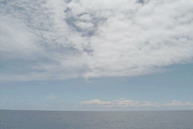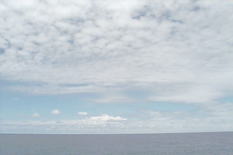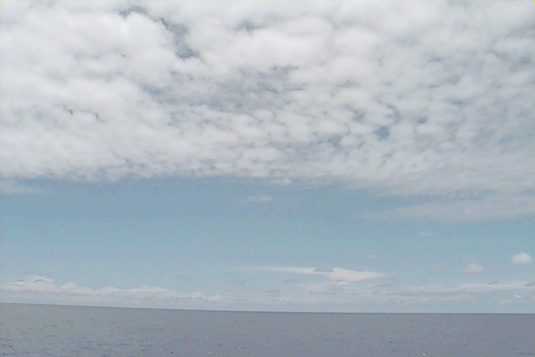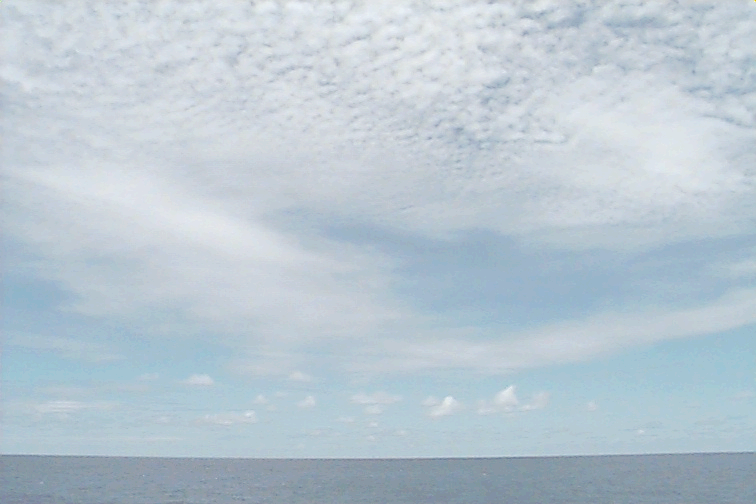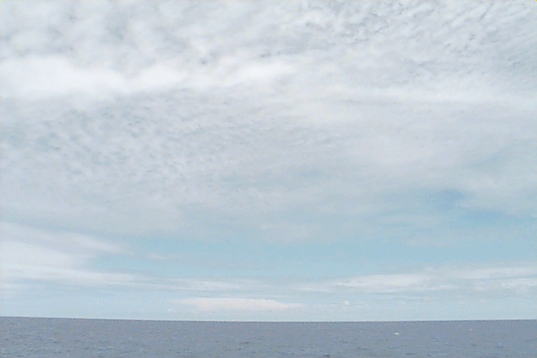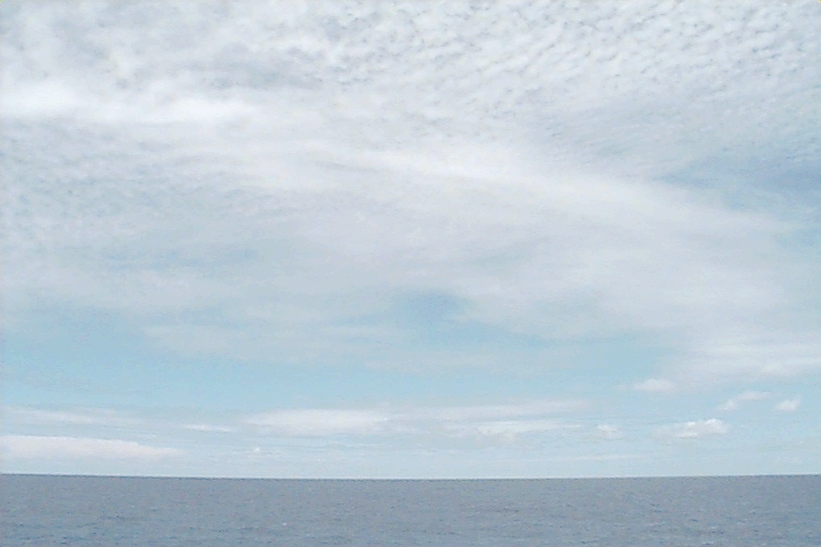 Pictures were not taken at stations 1,2,3 for safety reasons. The fantail was being worked on. Ac covers most of the sky. Some dense Ci coming from the Cb on the horizon. Several Cb's visible with beautiful anvils. Some Cu hanging around - almost no vertical development. Some lens shaped clouds at midlevels around the Cbs.