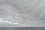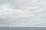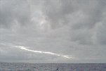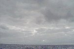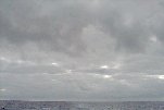 Sc cloud deck fairly thick. Cu humilus - mainly fragmented Cu. Some of the Cu tops seem to join up with the Sc deck to the E. Many more Cu to the W, merging to form a nearly continuous layer below Sc. Rain falling from a ~10 degree azimuth sector S. There remain a few crevasses in the Sc deck, but no isolated floes like we saw last hour.