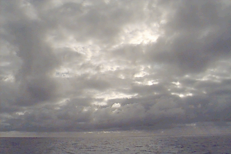 Lots of sea spray. Seems to be some along-wind roll like organization of the clouds.