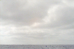 Sc layer with fairly homogeneous grey bottoms. Break in cloud deck over ship.