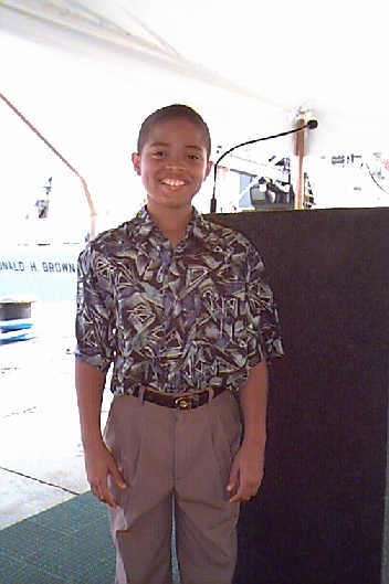 Ms. Stephanie Lock, Master Sean Musser and Master Ryan Musser, visiting the R/V RONALD H. BROWN on commissioning day.