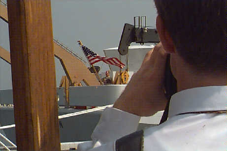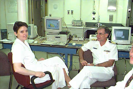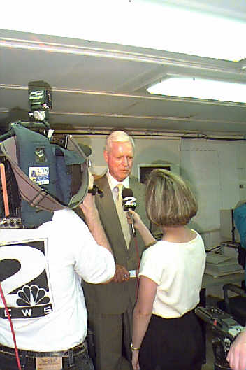 Senator Hollings, doing a television interview in the computer lab aboard