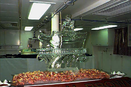 Chief Steward Allen Gary and the ice sculpture for the commissioning ceremony reception.