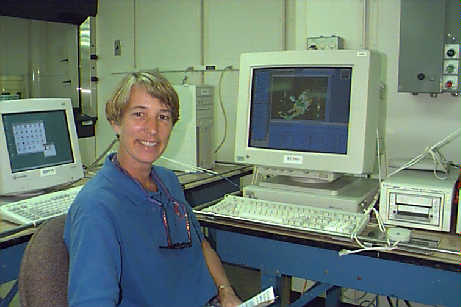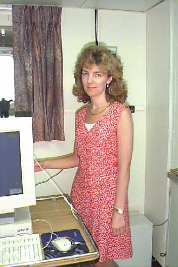 Ms. Sally Dowart, a teacher from South Carolina is looking over the radar images and the computer systems on the RONALD H. BROWN during the open house.