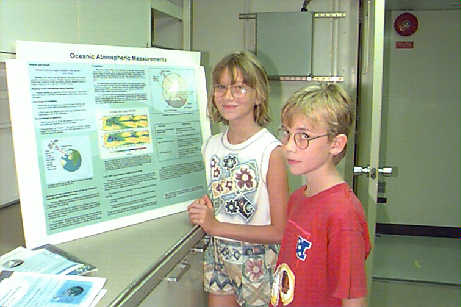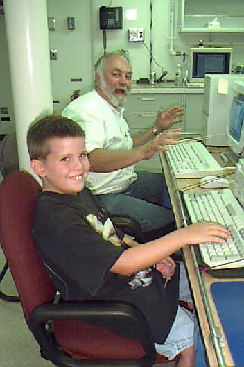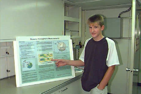 Mr. Brandon Jones of Greentop, MO points out weather data from a posterin the science lab on the RONALD H. BROWN. The future Chief Scientist was onboard to inspect the new ship.